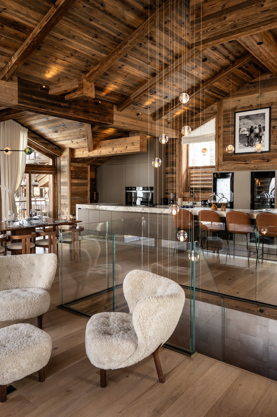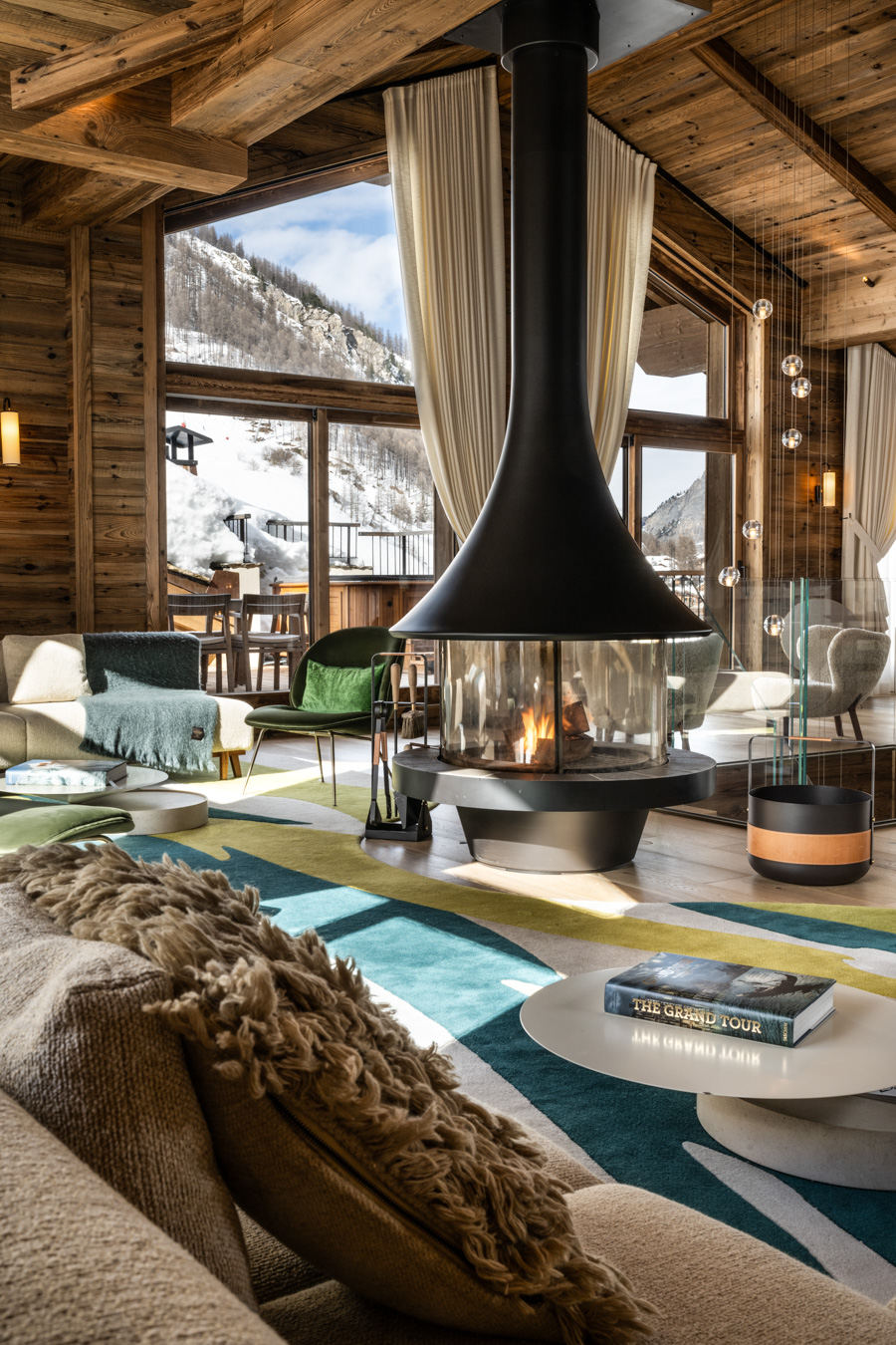 Pénétrer à l’intérieur de la Suite n°7, c’est entrer dans un univers cosy, feutré et chaleureux avec un mélange subtil entre le vieux bois et la décoration contemporaine qui se marient à merveille. Le style raffiné de cette Suite se déploie dans toutes les pièces, réparties sur quatre niveaux.